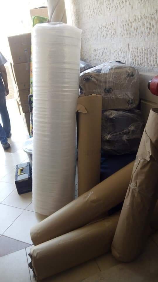 ويتم تغليف الاثاث باجود أنواع التغليف ( تغليف بورق مبطن باسفنج – وتغليف بنايلون. . . وغيرها )